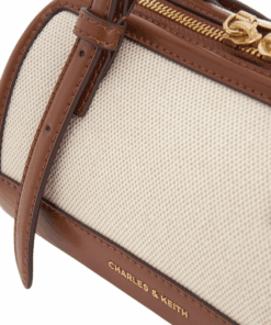 Charles & Keith Enola Canvas Two-Tone Bowling Bag – Chocolate