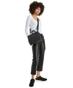 - Exterior front zip pocket; interior front slip pocket and back zip pocket; adjustable webbing shoulder strap; dual top handles; top zip fastening
